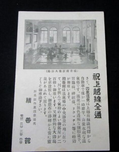 群馬 四萬温泉湯元 積善館 祝上越線全通(絵葉書)1枚