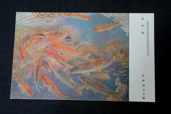 権藤種男 池の鯉 第5回文部省美術展覧会(絵葉書)1枚