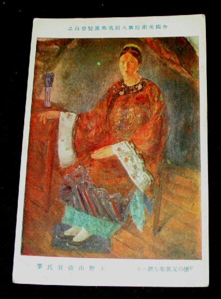 上野山清貢 F嬢の支那服を纏へる 帝國美術院第8回美術展覧会(絵葉書)1枚