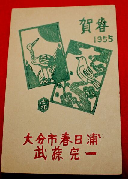 武藤完一 木版画 年賀(絵葉書)1枚