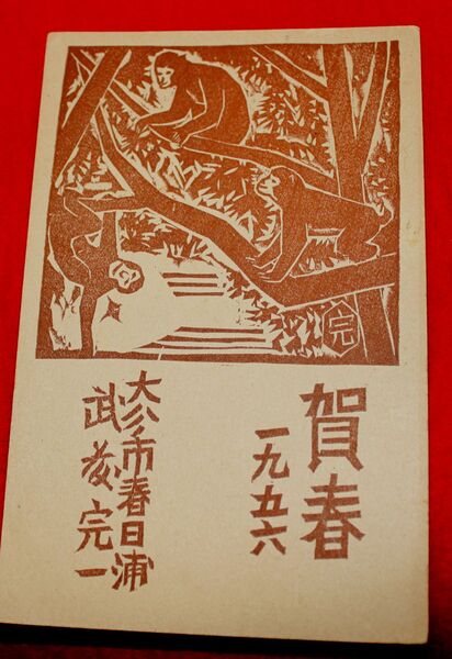 武藤完一 木版画 年賀 猿(絵葉書)1枚