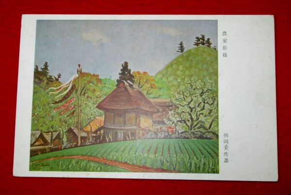 熊岡美彦 農家新緑(絵葉書)1枚