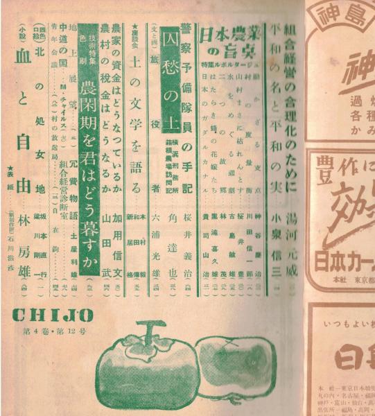 ※地上第4巻第12号 平和の名と平和の実=小泉信三 警察予備隊員の手記=桜井義治 因愁の土ー横浜刑務所箱根農場訪問記=角達也 鼎談:土の文学を語る=木村毅、新居格、和田傳 等々