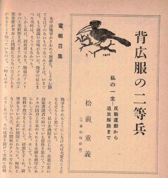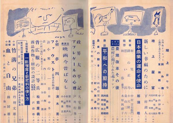 ※地上第5巻第1号 鼎談:平和への期待=長與善郎・阿部眞之助・高田市太郎 新しい幸福のために=下村湖人 背広服の二等兵=松前重義 等