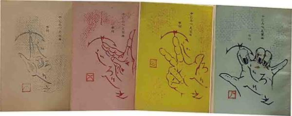 • 解説 同劇団機関誌 限定50部 池上玲子・浅海義大他 各号扉に「二枚組・割り絵」「「移り絵」「返し絵」「扉絵」の仕掛け絵付 44~52頁 15×10