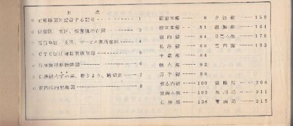 管内構内配線図 北海道総局.1981年5月現在 17路線の各駅の構内の電気の配線図 ①函館本線(上目名~滝川まで42駅)/②根室本線(一の坂~富良野まで12駅)/③岩内線(幌似~岩内まで3駅)/④札沼線(新琴似~新十津川まで15駅)/⑤千歳線(植田~北広島まで7駅)/⑥幌内線(萓野~幾春別まで5駅)/⑦万字線(万字炭山 1駅)/⑧歌志内線(歌志内 1駅)/駅)/⑨室蘭本線(大岸~志文まで35駅)/⑩石勝線(駒里~上落合まで20/⑪夕張線(沼ノ沢~夕張まで4駅)/⑫胆振線(久保内~京極まで5駅)/⑬日高本線(勇払~様似まで21駅)/⑭富内線(豊城~日高町まで14駅)/⑮釧路局(釧路、帯広)/⑯旭川局(旭川~北旭川まで3駅)/⑰青函船舶局(函館~青森まで8駅)