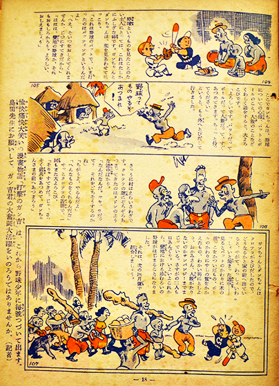 漫画物語 打撃のガン吉密林活躍の巻 島田啓三作 B5判18p綴穴2箇所「野球少年」附録 昭和24年