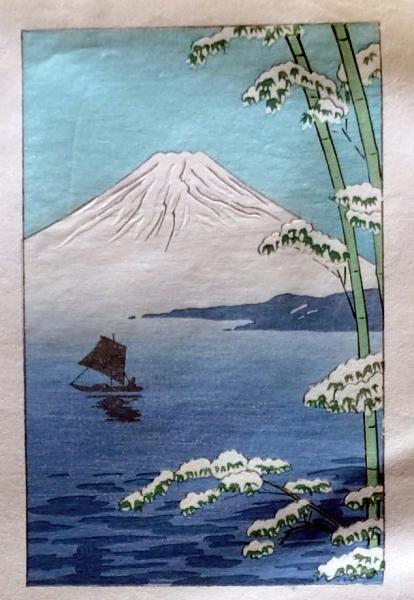 • 解説 D25103115〇彩色木版画 ミニサイズ 富士山 芦ノ湖 錦絵 浮世絵 昭和年代〇和本古書古文書