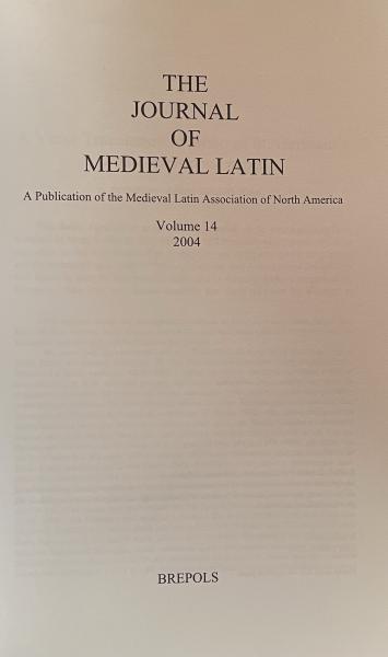 The Journal of Medieval Latin. Volume 14 (2004). A Publication of the Medieval Latin Association of North America