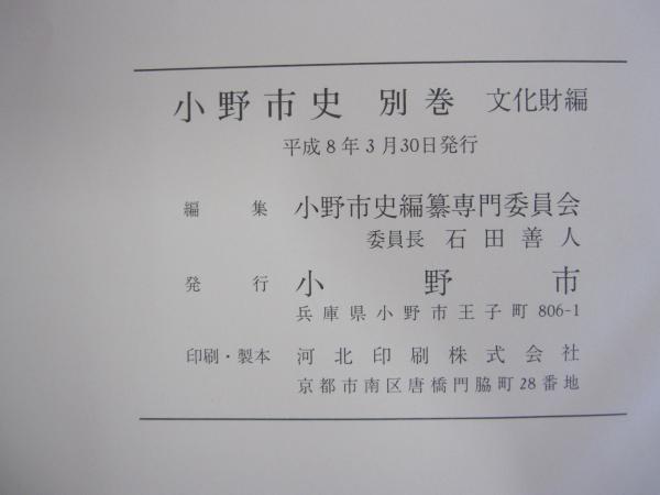 小野市史 別巻 文化財編