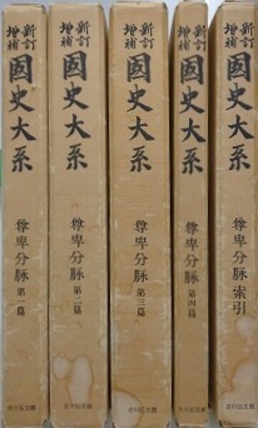 • 解説 全5冊揃(尊卑分脉 第1~4篇+索引) 函(背にヤケスレシミ) B5判上製 ※第2篇の本文にマーカーによるチェック程度の線2ヵ所あり、小口経年ヤケ少