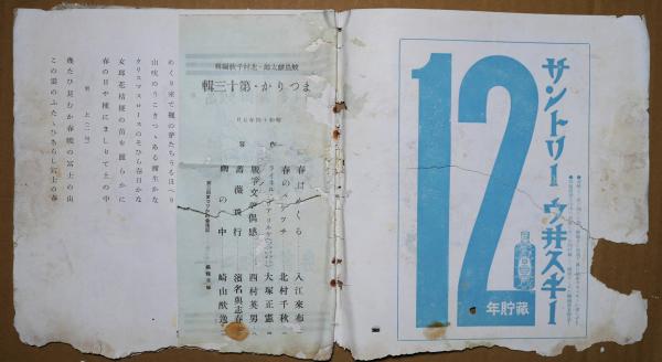 • 解説 表紙(裏表)破れ 表紙、本体に下部欠損あり 「春はめくる」入江來 「春のスケッチ」北村千秋 「ライネル・マリア・リルケ」スティヴン・ベンダー 大塚正憲訳 「戦争文学偶感」西村英男 「薔薇飛行」(詩)濵名與志春 「繭の中」崎山猷逸
