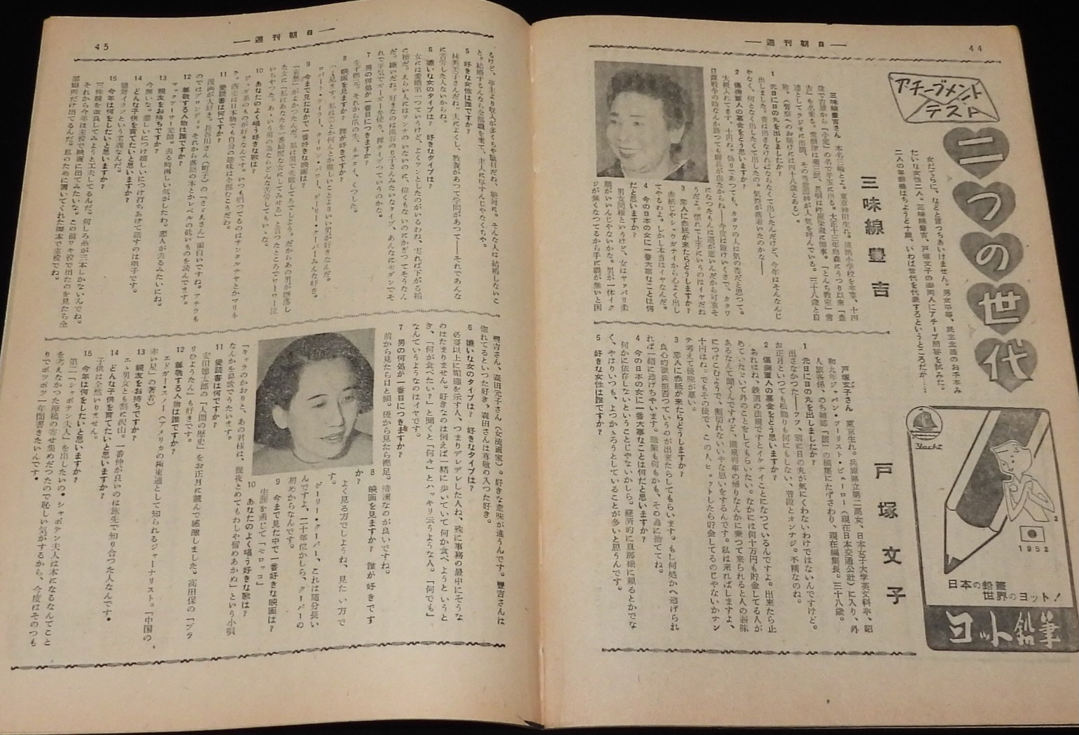 週刊朝日 昭和27年1/27号 電波合戦総まくり/徳川夢声/長谷川町子/三味線 豊吉