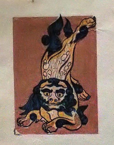 • 解説 D25103038〇彩色木版画 ミニサイズ 狛犬 錦絵 浮世絵 昭和年代〇和本古書古文書