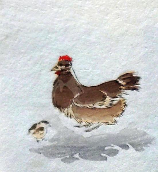• 解説 D25103053〇彩色木版画 ミニサイズ 鶏 ひよこ 錦絵 浮世絵 昭和年代〇和本古書古文書