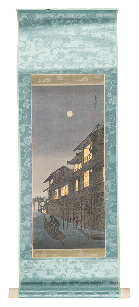 • 解説 木版 36.1x16cm(イメージサイズ)/65x22.2cm(軸サイズ)1幅トリミング 少シワ 渡辺版 軸装(箱欠)