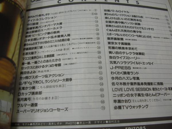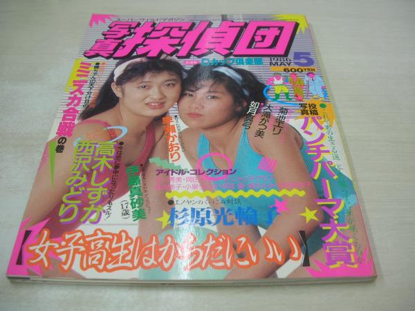 写真探偵団 1986年05月号 高木しずか+西沢みどり 表紙+巻頭グラビア アイドルコレクション 岡田有希子 堀ちえみ 中川絵理 杉原光輪子(インタビュー記事) スポーツ&アクション 大滝かつ美 如月真弓 もりさき綾 早瀬かおり