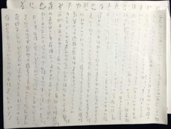 使用したとみられる朗読作品「ピアノ」の直筆下書きです。
