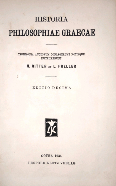 Historia philosophiae Graecae Testimonia auctorum conlegerunt notisque Editio Decima