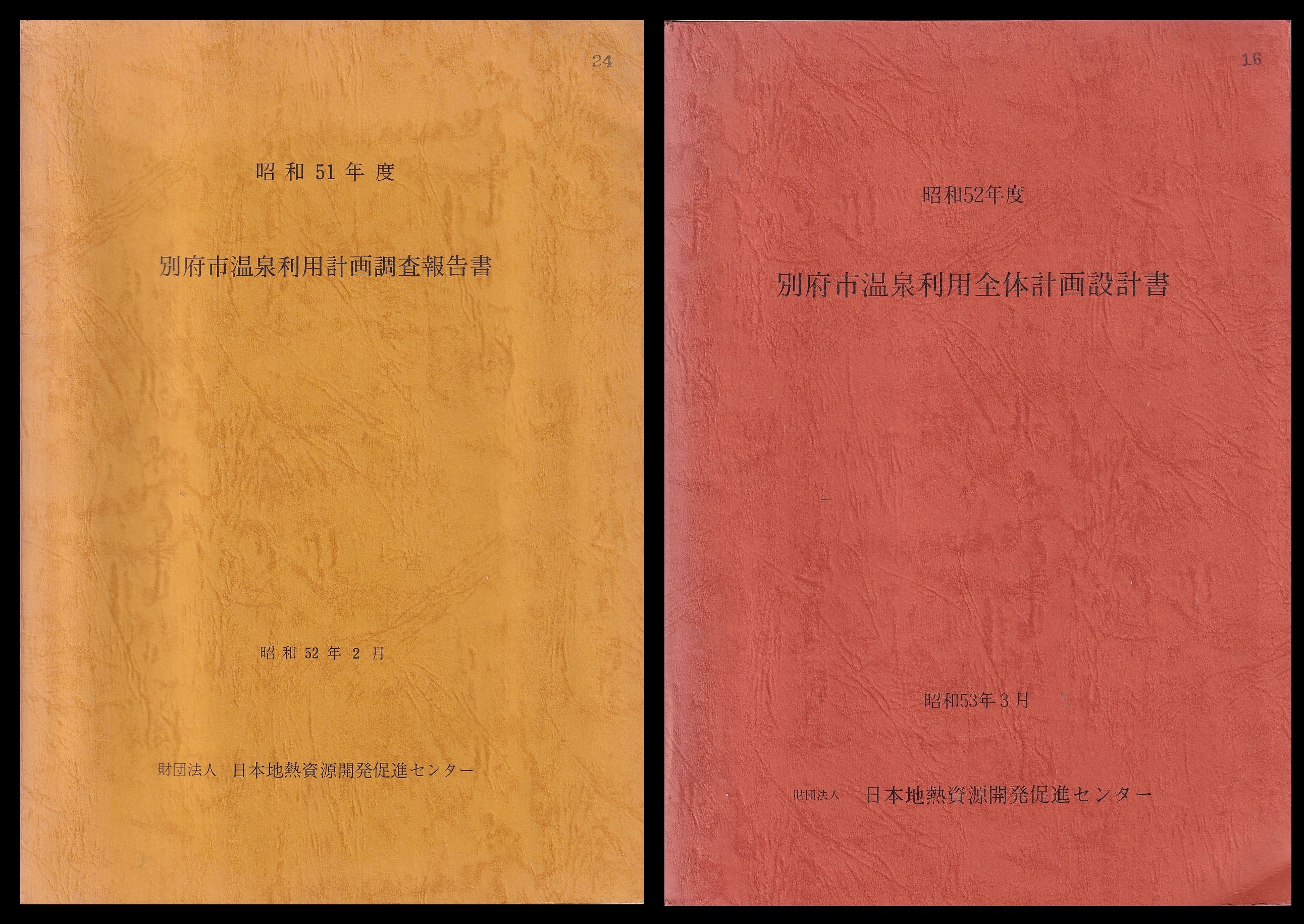 昭和51年度 別府市温泉利用計画調査報告書/昭和52年度 別府市温泉利用全体計画設計書  2冊