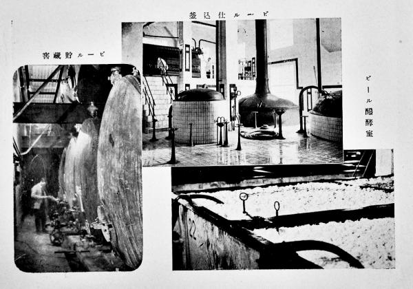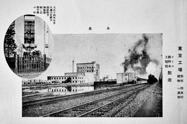 東京工場全景・ビール仕込釜・ビール瓶詰機・大麦発芽罐・他