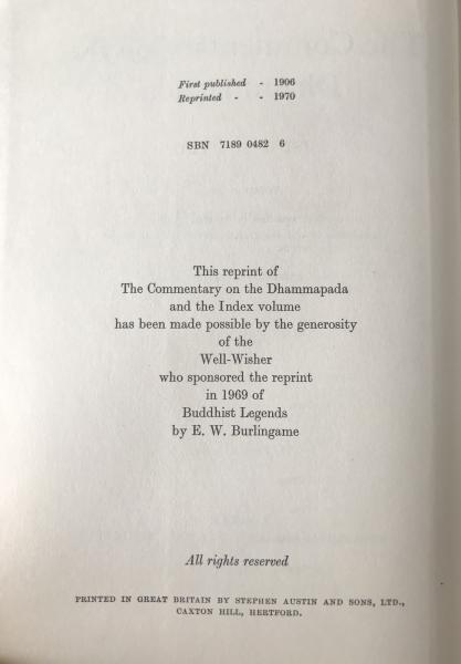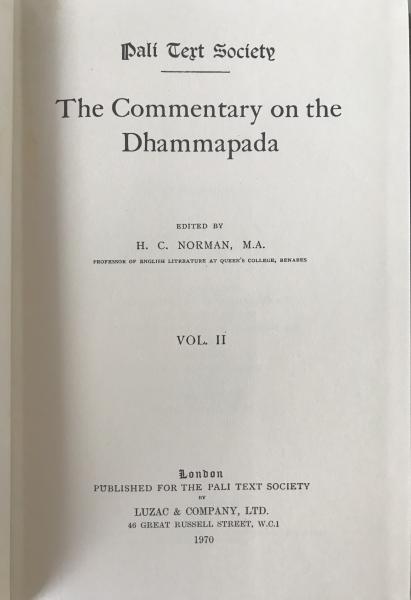 The Commentary on the Dhammapada, Vol. II - Pali Text Society Reprint, 1970 1