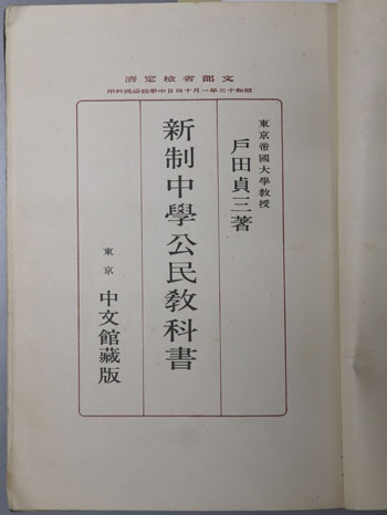新制中学公民教科書 昭和13年1月14日文部省検定済:中学校公民科用 [上巻] 修正