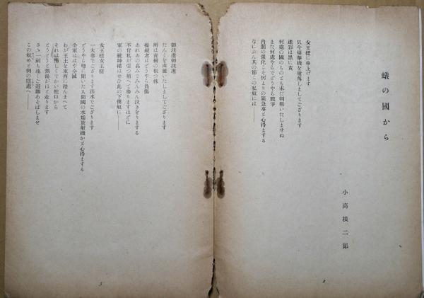 • 解説 背傷み 背上部小欠損 「蟻の国から」小高根二郎 「ながれ」殿岡辰雄 「出雲神社」高橋新吉 「三国干渉」青山虎之助 「夢魘