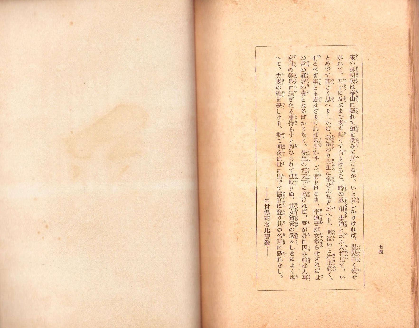 • 解説 写真2頁、本文74頁、並本、背1/4ほど欠、裏表紙一部やけ