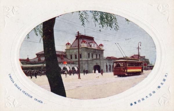 戦前絵葉書 ○大阪 大阪 大阪名勝 梅田大阪停車場 路面電車 古写真 カラー ○和本古書古文書