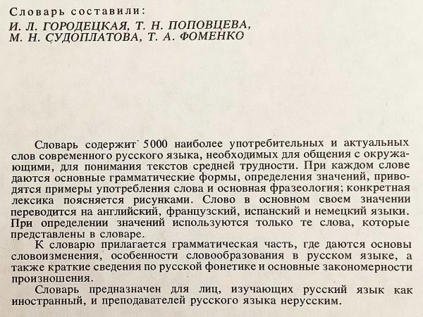 現代ロシア語の主要5,000語を収録し、語義・文法形・用例・慣用句を簡潔に示した外国人学習者向けの解説辞典。