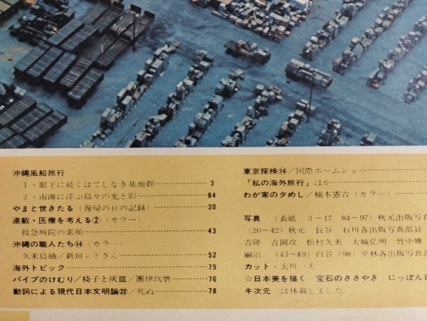 • 解説 表紙:フォーク・ランチャー六基(地花サイト多幸山)/特集:沖縄/救急病院の素顔/久米島紬/わが家の夕めし:楠本憲吉