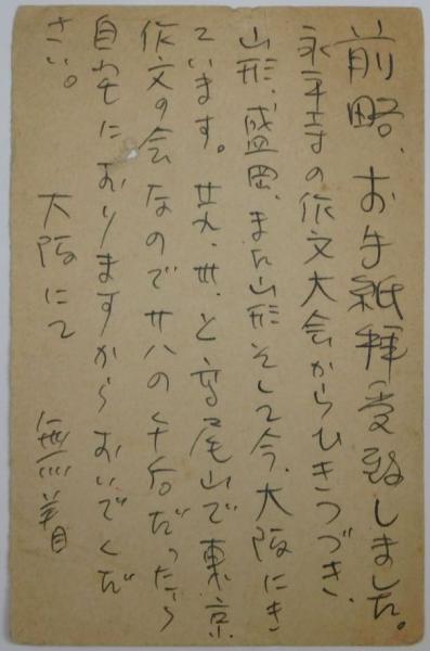 無着成恭自筆葉書