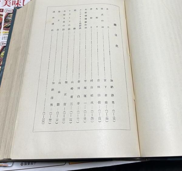 • 解説 目次写真あり 奥付に「實用手工藝講座男子部木工、木彫、塗術合本」 経年ヤケシミ 箱(口角外れを補修、墨汚れ) 本体背革経年劣化、状態並 通巻頁はなく、講義ごとに頁ノンブル 本講義執筆:加納淳男、宮下孝雄、村山桂次、平塚運一、倉田白羊、山崎省三、畑正吉、山本鼎 後ろの課外講話執筆:齋藤了一、足立源一郎、三村鐘三郎、倉田白羊、坂本榮 図版入 昭和3年刊 菊判厚冊