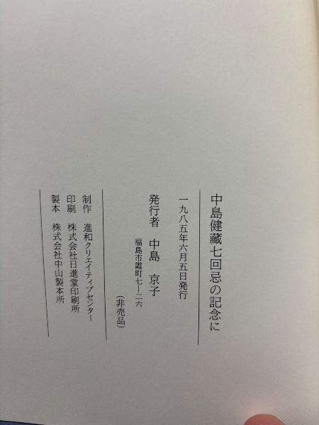 中島健藏七回忌の記念に