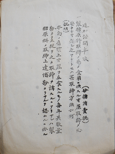 • 解説 台湾総督府資料 砂糖消費税/営業証明取扱方打合ノ件/提議追加/既往五年間製糖税額調