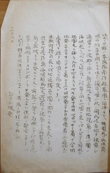 末松財務局長旅行日程(神戸/基隆/台北/香港/他) 孔版印刷B5判4p 台湾総督府資料 明治~大正期