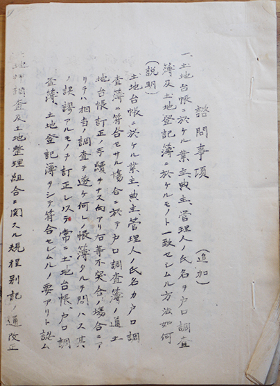 台湾土地台帳諮問事項(追加)/土地整理規定/土地整理組合準則/他 孔版印刷B5判30p 明治期