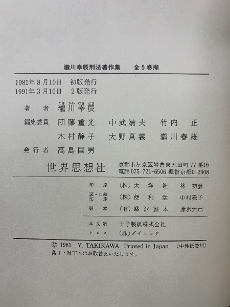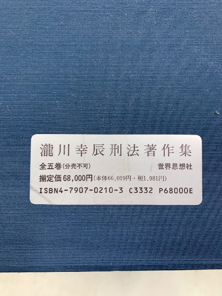 滝川幸辰刑法著作集 全5巻揃 1991年2版