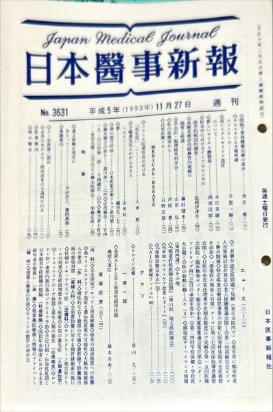 日本医事新報 3631  Japan medical journal 1993年11月27日