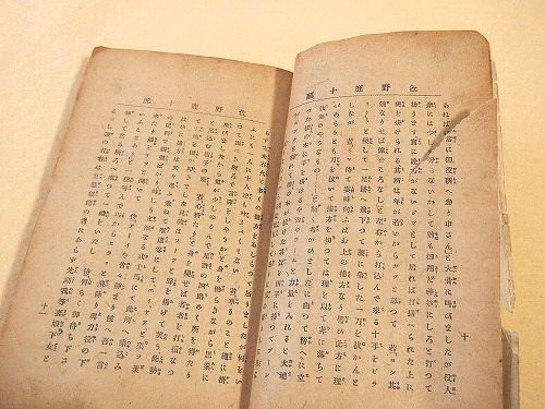 • 解説 講談速記。約21×15センチ。163ページ。裏表紙欠。ページ2枚に5センチほどの破れ。表紙端に小欠け。口絵に着色。裏見返しに書き込み。小口底部に書き込み。扉に印あり。