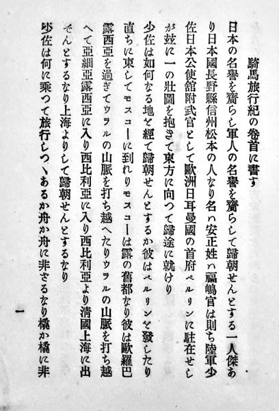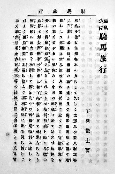 福島少佐騎馬旅行 五柳散士編著 A5判74p並本 東雲堂 明治26年