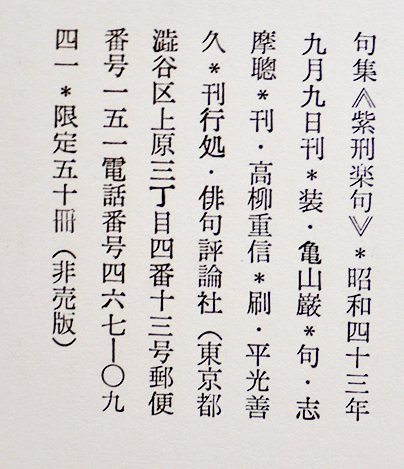 志摩聰句集 蜜/紫刑楽句2冊組 筒箱入各限定50冊非売版美本 俳句評論社 昭和43年
