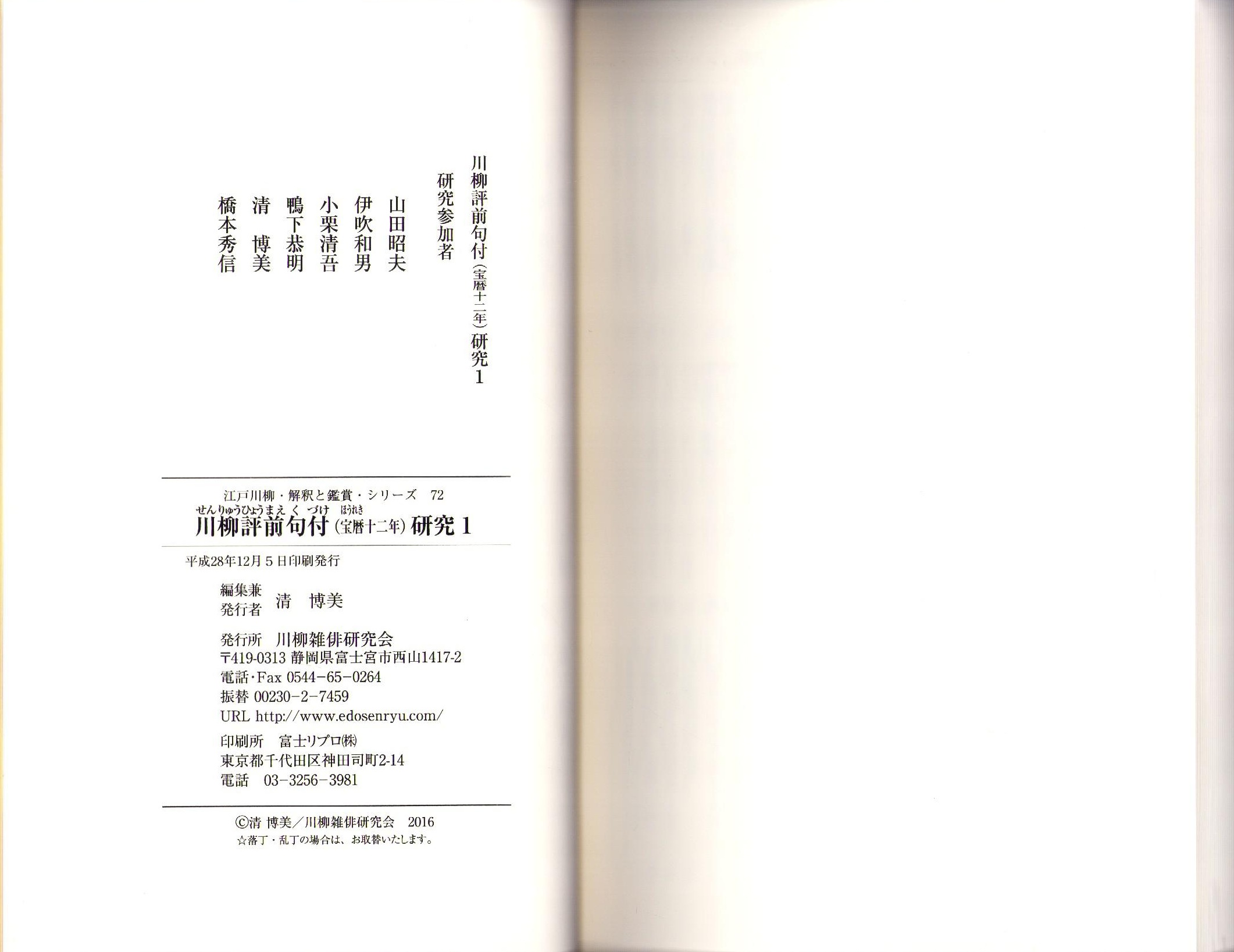 • 出版社 発行所・川柳雑俳研究会(静岡県)、発売所・三樹書房