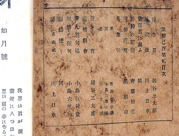 • 解説 明治の川柳雑誌、経年の日焼け・埃シミあり、写真参照、ゆうメール190円。