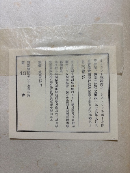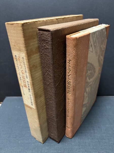 • 解説 限定65部内第40番本、丸背コーネル革装、夫婦箱・外函付、署名無し、経年日焼けシミ