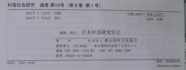 村落社会研究 : 年報 Annual bulletin of rural studies