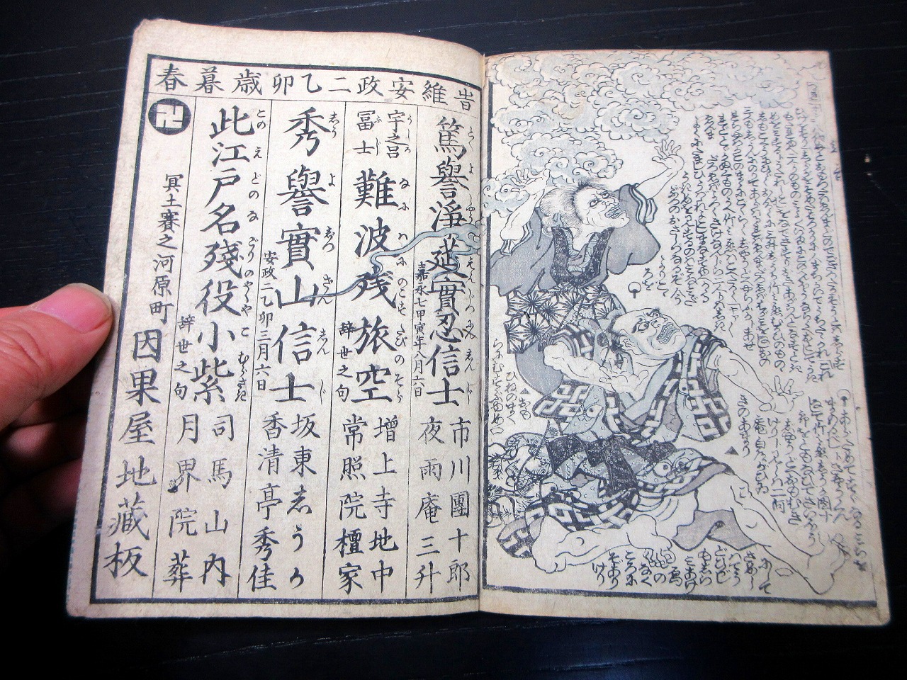 • 解説 和本江戸安政2年(1855)八世団十郎追善の戯作「追善明烏夢物語」全1冊/二河庵白道/絵入古書古文書/木版摺り/歌舞伎/死絵です。