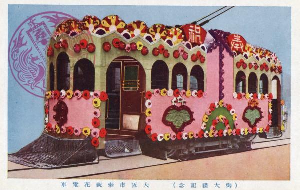 戦前絵葉書 ○御大礼記念 大阪市奉祝花電車 古写真 カラー ○和本古書古文書