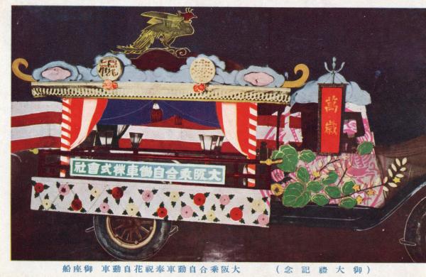 戦前絵葉書 ○御大礼記念 大阪乗合自動車株式会社 奉祝花自動車 御座船 古写真 カラー ○和本古書古文書